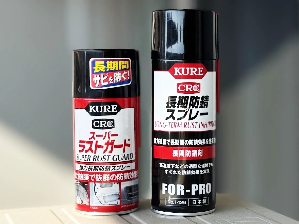 その為の防サビ剤を、手頃な値段のKURE「長期防錆スプレー」と「スーパーラストガード」どちらにするか悩みました。